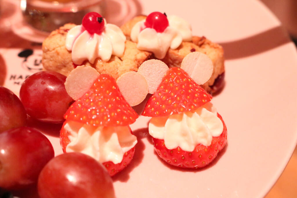 彩り豊かなフルーツの中でも、ひときわ目を引く “ミッキーサンタのいちご” は、写真映え必至の可愛さ。