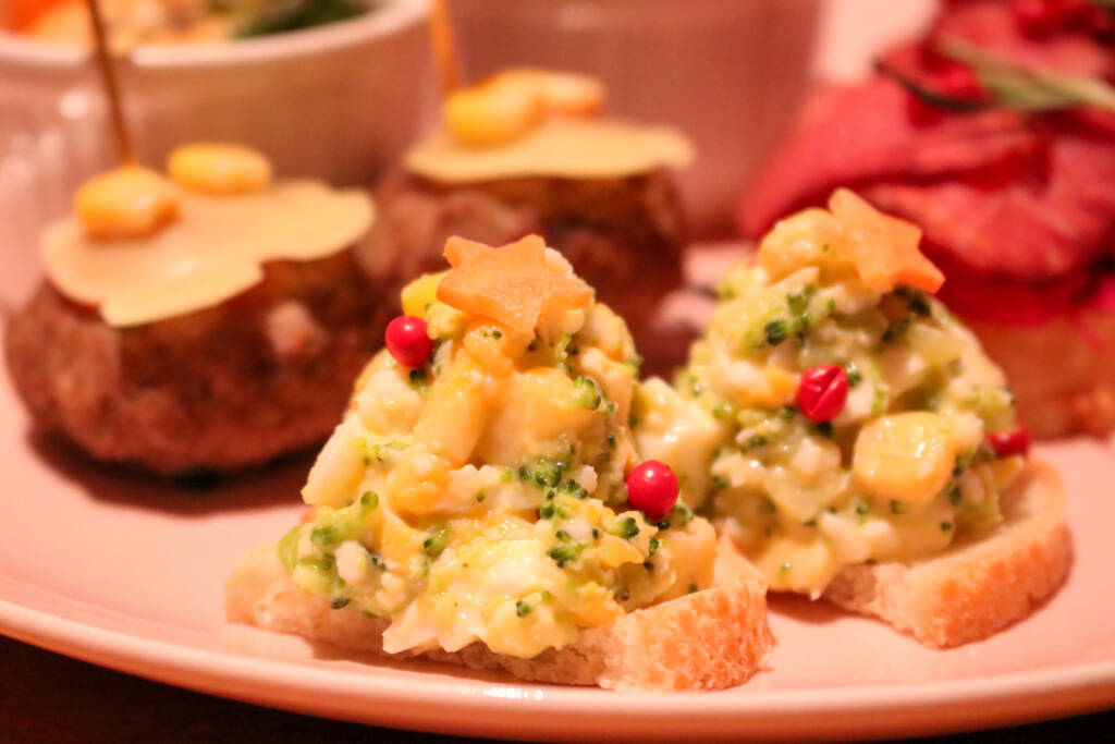 ブロッコリーとたまごのタルティーヌは、まるでクリスマスツリーのようなビジュアル!