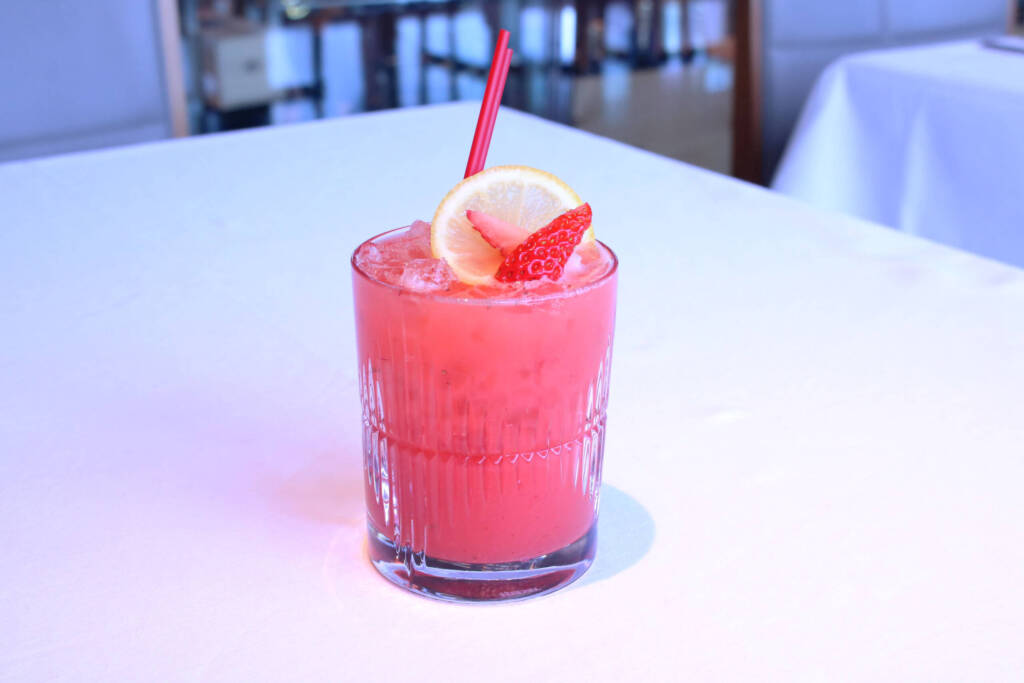 ドリンクでは、いちごが香り立つストロベリーマティーニやストロベリーベリーニも用意され、グラスからもいちごの風味を堪能。
