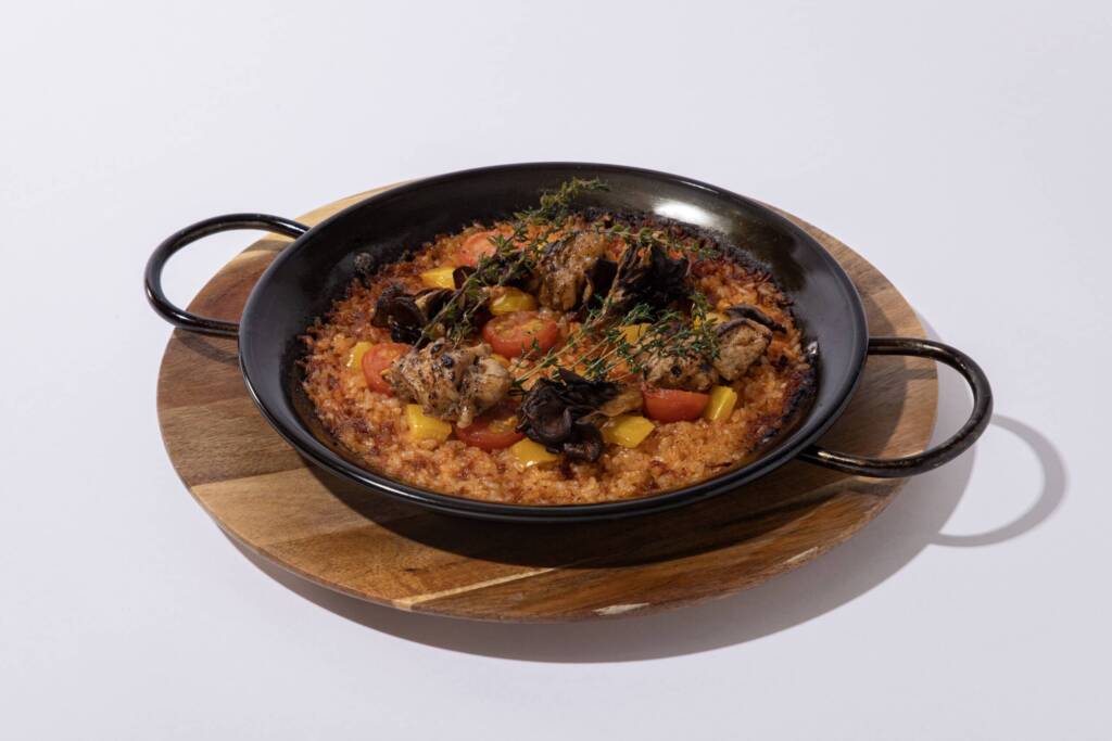 チキンや舞茸、トマト、パプリカなどを使用し、任務の合間に食べる一皿をイメージしたパエリアに仕上げられています。